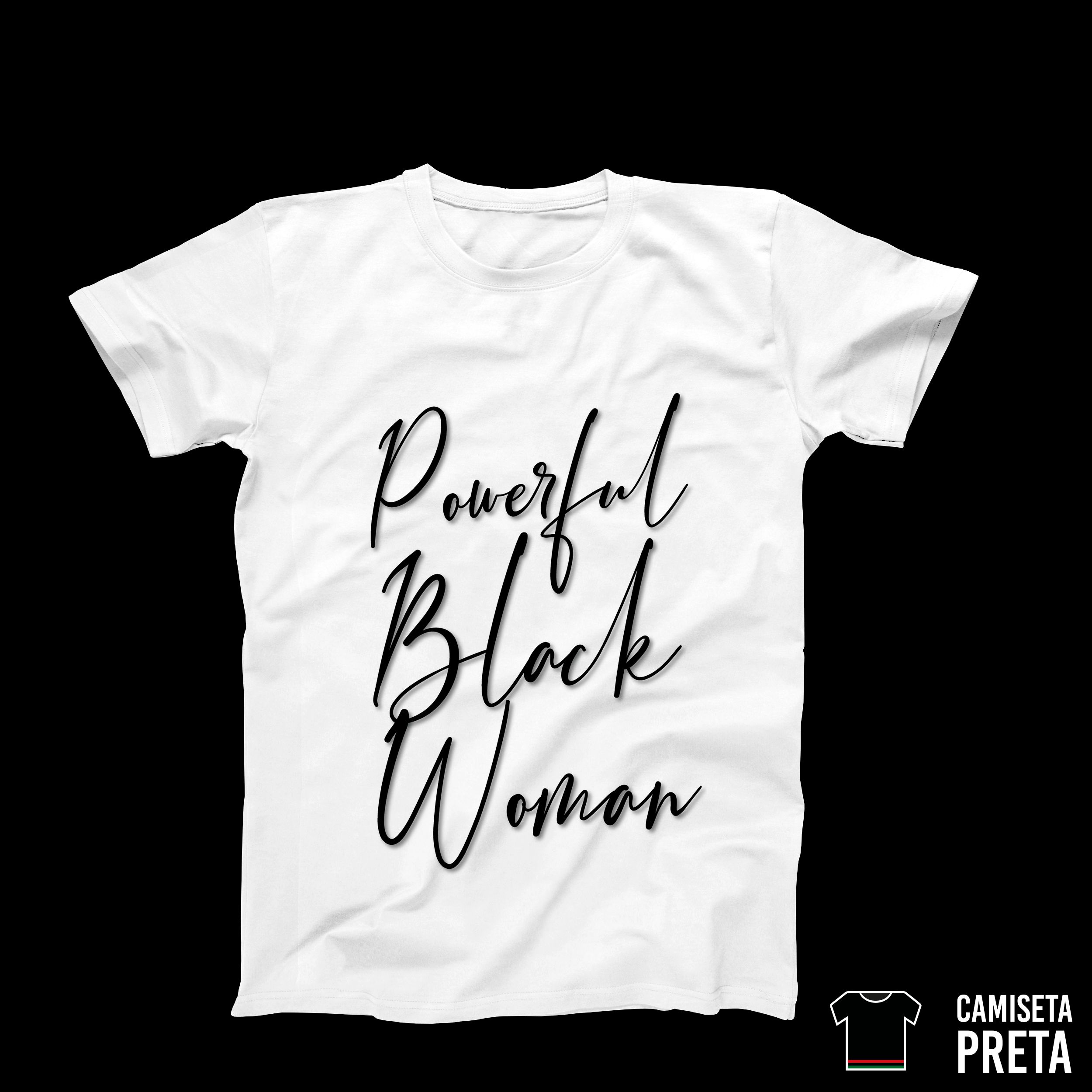 Descrição : Estampas com as frases "Powerful Black Woman" e "Powerful Black Woman made this with love" .