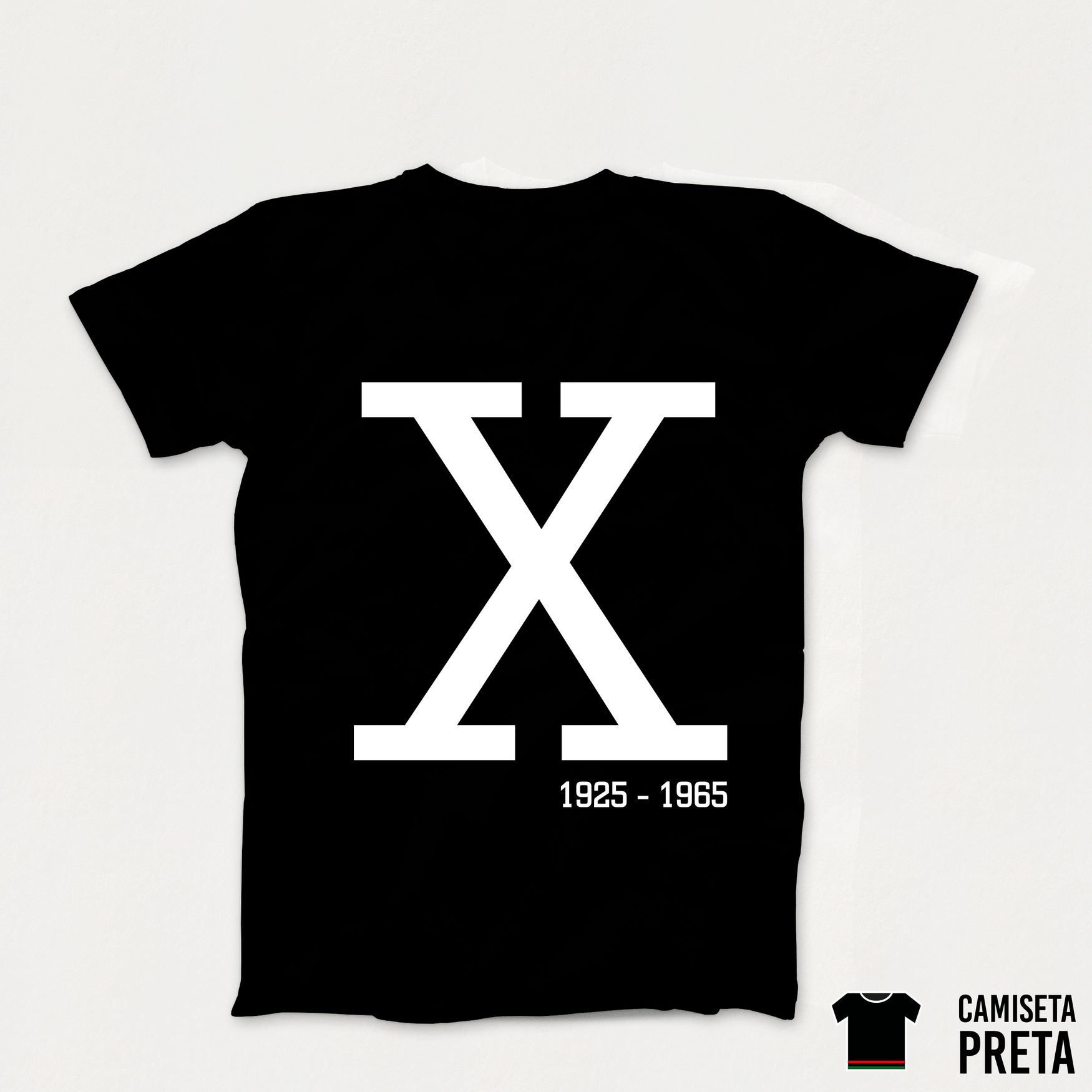 Descrição da Estampa - #pracegover : Estampa com a letra X em referência ao ativista Malcolm X.